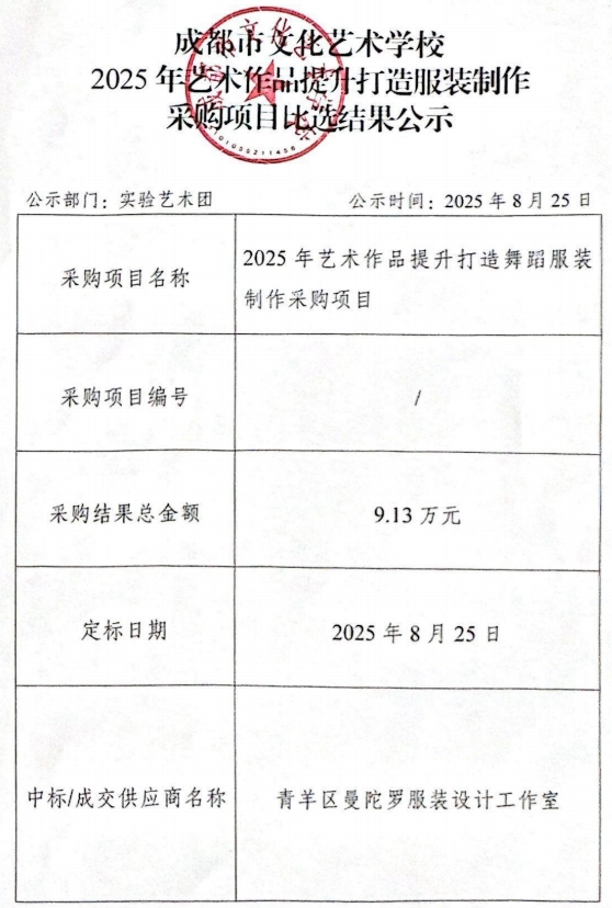2025年艺术作品提升打造服装制作采购项目比选结果公示