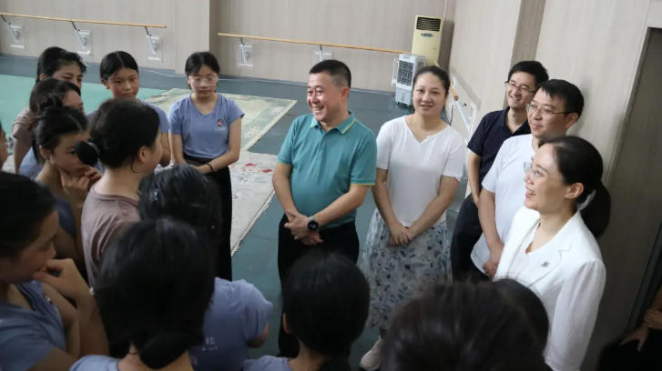 李天昊副局长一行深入非遗班、舞蹈班及文化课教室,关心师生教学与学习情况,对教师们的敬业精神给予高度赞扬,并鼓励学生勤学苦练、茁壮成长。